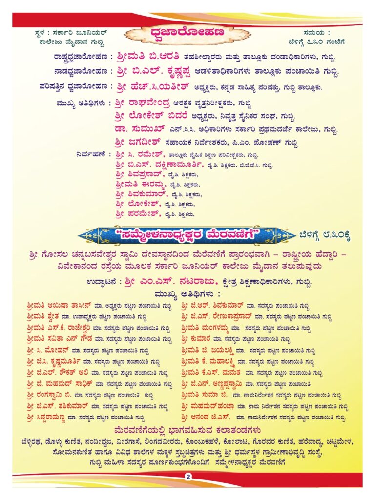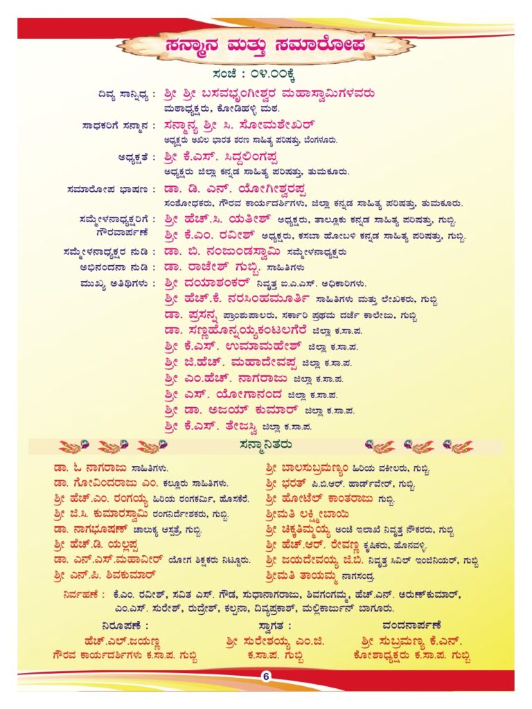 ತುಮಕೂರು ಜಿಲ್ಲೆಯ ಗುಬ್ಬಿ ತಾಲ್ಲೂಕಿನ ಆರನೇಯ ಕನ್ನಡ ಸಾಹಿತ್ಯ ಸಮ್ಮೇಳನಕ್ಕೆ ನಿಮಗೆಲ್ಲಾ ಆತ್ಮೀಯ ಆಹ್ವಾನ…By sathishgbb@gmail.com / December 19, 2025
