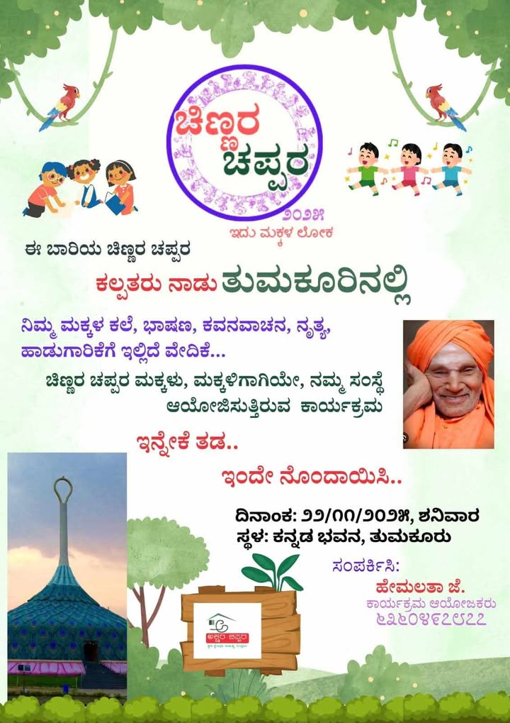 ನಾಡಿನ “ಅಕ್ಷರ ಚಪ್ಪರ” – ಕನ್ನಡ ಸಾಹಿತ್ಯ ಮತ್ತು ಸಾಂಸ್ಕೃತಿಕ ಸಂಸ್ಥೆಯು ಕಳೆದ ಮೂರು ವರ್ಷಗಳಿಂದ ಮಕ್ಕಳ ದಿನಾಚರಣೆ ಹಾಗೂ ಕನ್ನಡ ರಾಜ್ಯೋತ್ಸವದ ಸಲುವಾಗಿ ಮಕ್ಕಳೇ ಮಕ್ಕಳಿಗಾಗಿ